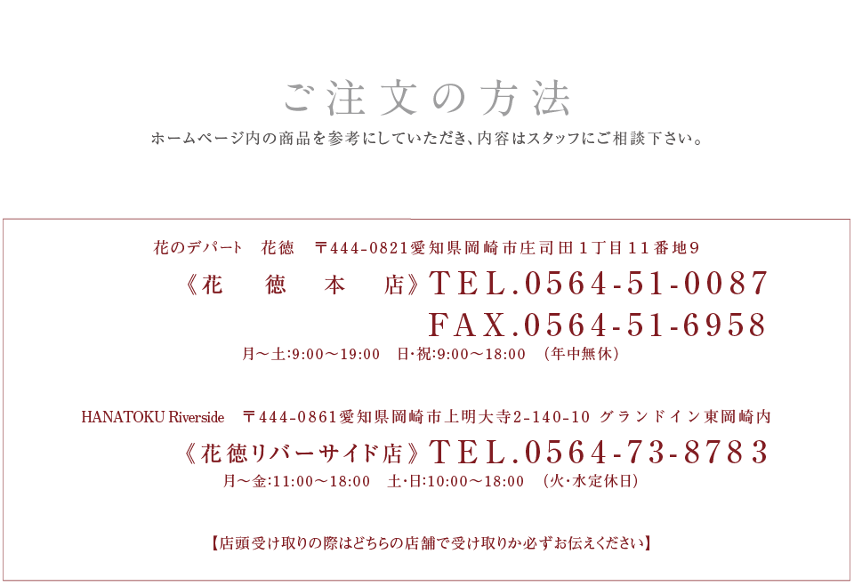 「hp@hanatoku.co.jp」からのメールが受信できるよう設定ください。
